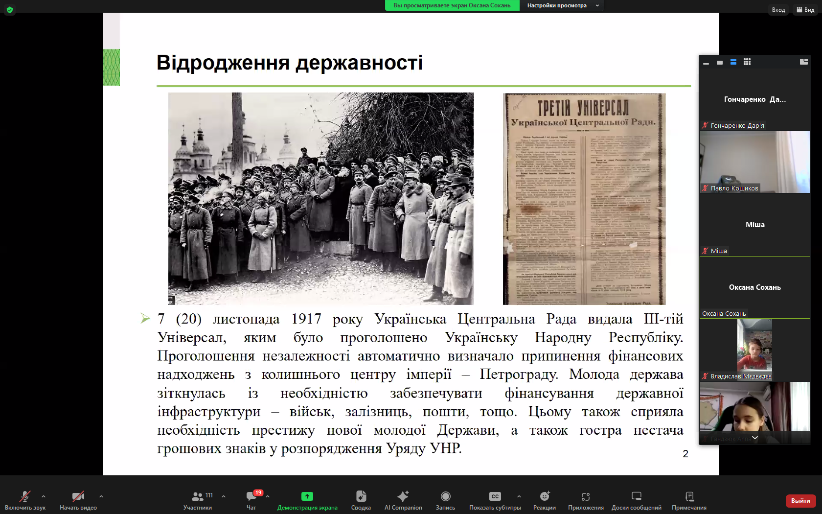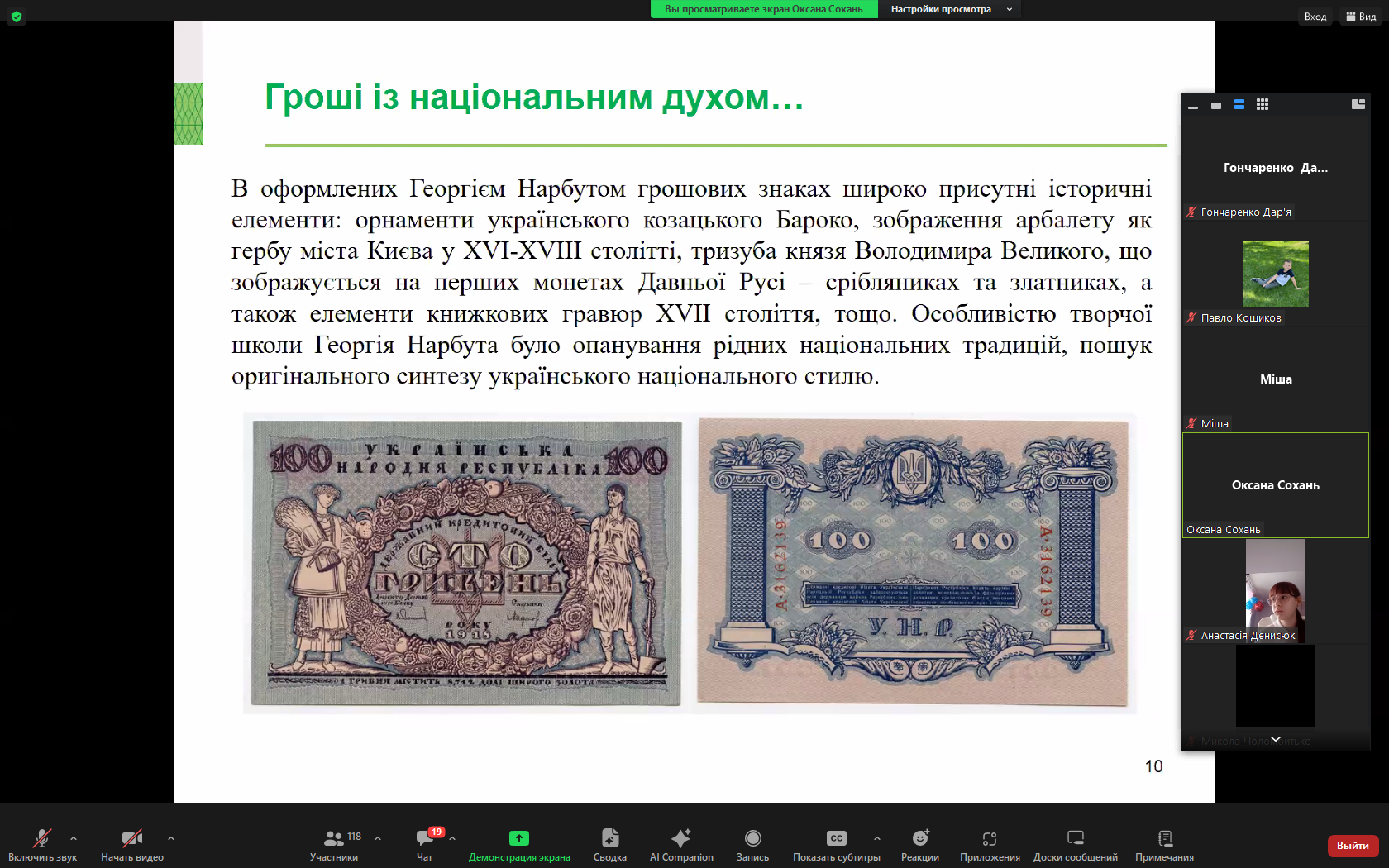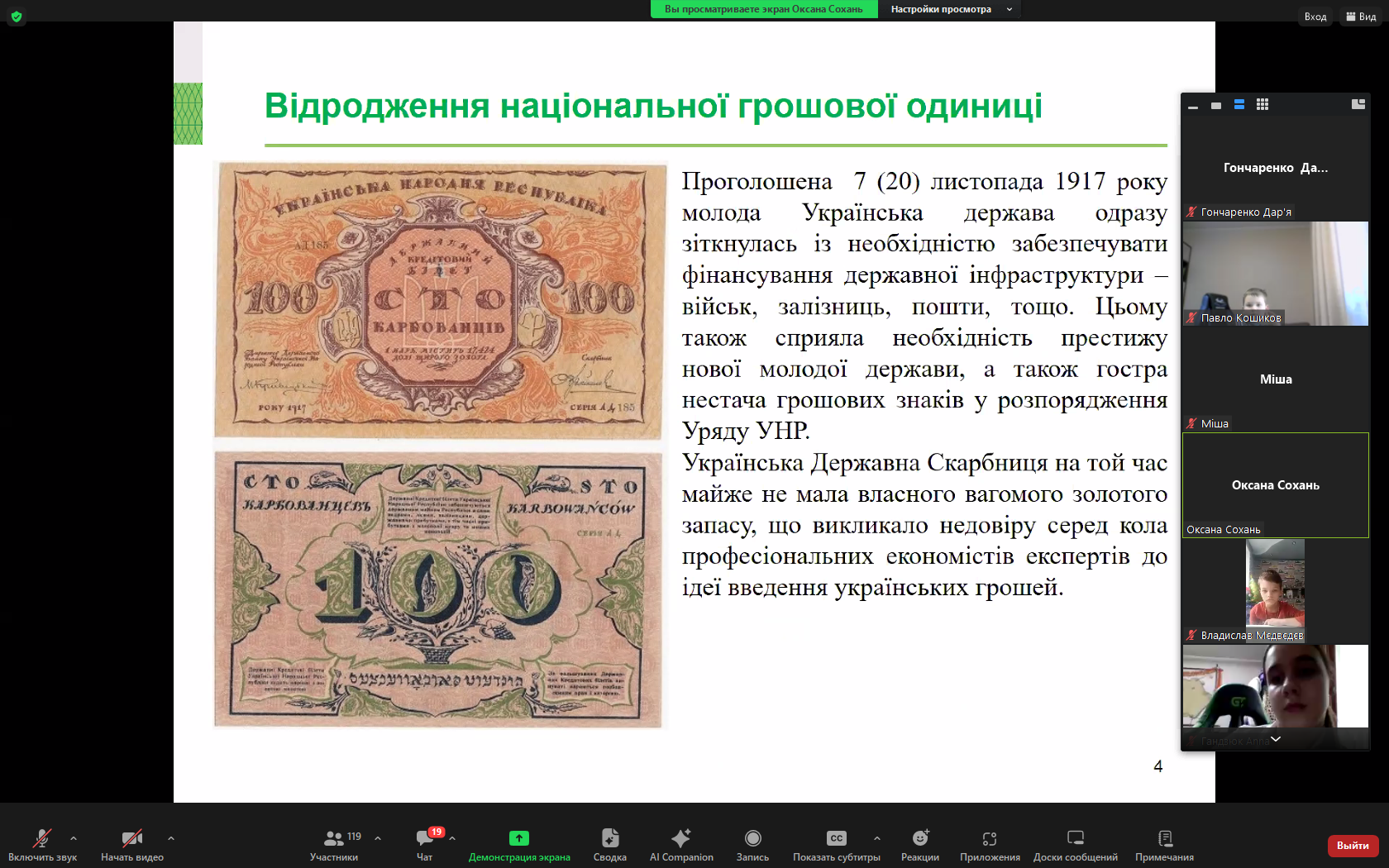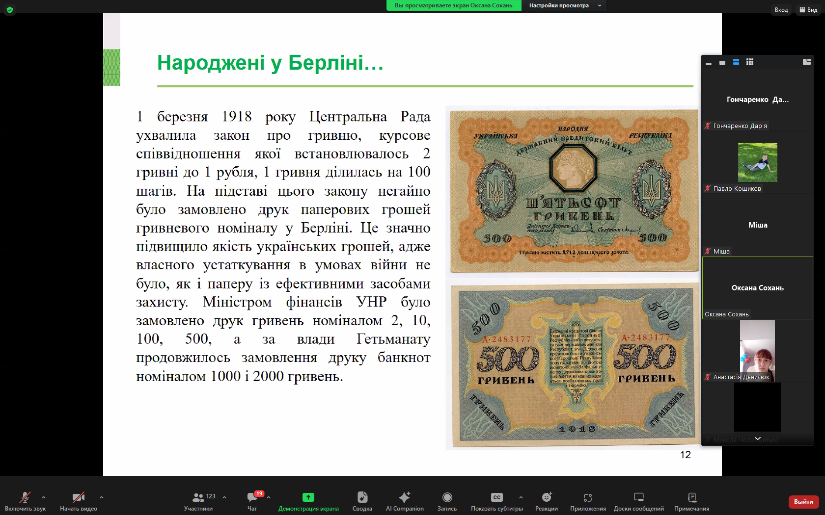 Сьогодні єдність – це не лише спільні кордони, а й спільні знання та повага до нашої державотворчої історії. До Дня Соборності України студенти-першокурсники долучилися до цікавого та пізнавального вебінару від Музею грошей Національного банку України на тему: «Грошовий обіг Української Народної Республіки».
