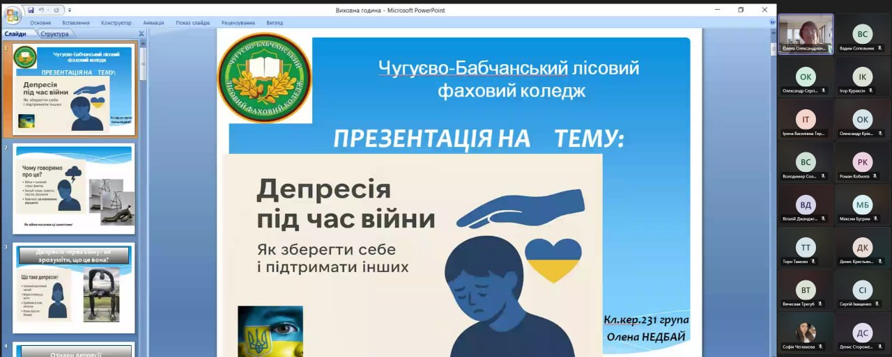 У коледжі відбулася відкрита виховна година на актуальну і важливу тему «Депресія під час війни: як зберегти себе та підтримати інших», яку провела класний керівник Недбай Олена.