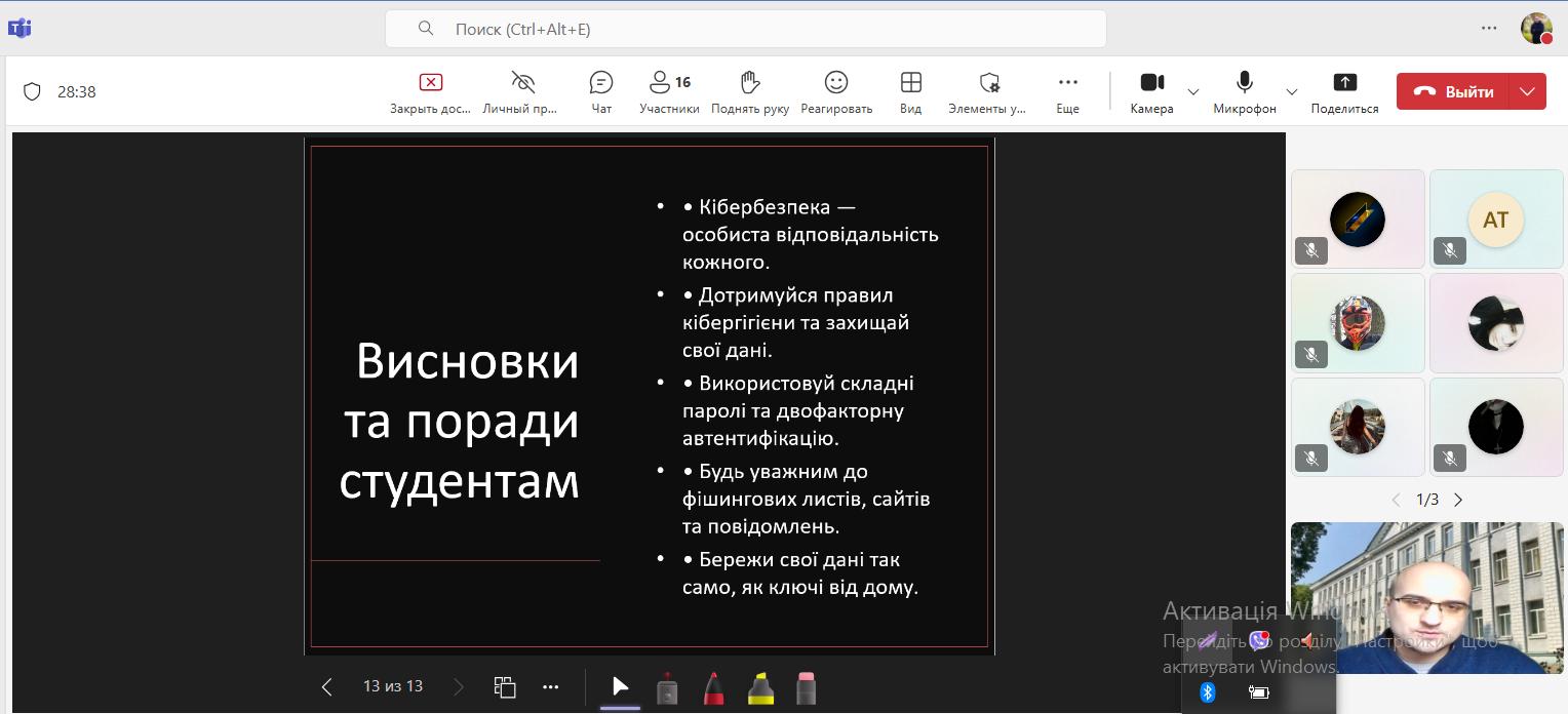 Головний висновок заходу — інформаційна безпека починається з особистої відповідальності кожного користувача!